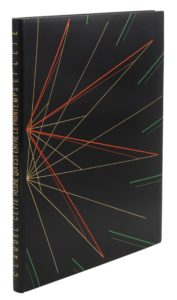Paris, NRF, 1913. Grand in-4° (318 x 243 mm). Box noir, décor géométrique de filets à froid, dorés et de couleurs vert et rouge, dos lisse, titre doré en long, encadrement de deux filets vert et rouge aux contreplats, doublure et gardes de daim noir, tranches dorées, couverture et dos conservés, chemise et étui assortis (P.-L. Martin). ÉDITION ORIGINALE tirée à 323 exemplaires sur arches, celui-ci le n°96, l’un des 300 numérotés.