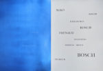 Paris, Maeght Editeur, 1972. In-2° (440 x 325 mm). En feuilles, sous couverture blanche rempliée illustrée sur les 2 plats et le dos d'un collage de papiers brillants rouge, bleu et vert, emboîtage toile grise. « Le poème d'André Frénaud et les eaux-fortes de Joan Miró qui l'accompagnent constituent, dans l'intention des auteurs, un libre hommage au génie de Jérôme Bosch ».