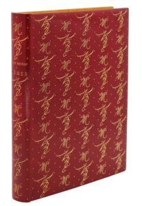 Paris, Jean-Renard, 1943. In-8 (235 x 185 mm). Maroquin rouge, grand décor doré (semé de chiffres alternés), encadrements intérieurs de maroquin citron, doublures et gardes de daim jaune, tranches dorées sur témoins, couverture et dos, chemise, étui (Paul Bonet, 1951).Tirage sur grand papier limité à 255 exemplaires ; un des 5 ex. (n°IV) sur annam de Rives.