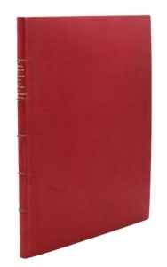 édition de Londres, 1774-1783. Grand in-4 sur onglets, maroquin rouge janséniste, dentelle intérieure, tranches dorées sur témoins (Chambolle-Duru).Suite d'un portrait de Latour, gravé par Saint-Aubin, et 30 planches par Moreau le jeune, pour illustrer les Œuvres de Rousseau.