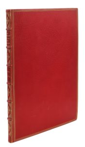 Paris, chez l'auteur, s.d. In-4, maroquin rouge, filets dorés autour des plats, dos à nerfs orné, dentelle dorée intérieure (Bumpus Ltd, Oxford).Un feuillet de titre suivi d'une dédicace gravée, un portrait de Fred.-Guill. de Prusse d'après Moreau interpreté par Duclos en 1784, un portrait de Henri IV par Porbus transcrit par Tardieu en double état, un portrait de Voltaire par de la Tour en double état dont l'un avant la lettre et 10 figures par Moreau gravées par Dambrun, de Launay, Duclos... en triple état, avec la lettre, avant la lettre et en eaux-fortes.
