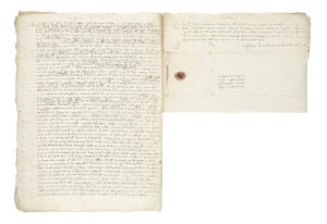 Manoscritto a inchiostro bruno. 1 bifolio, scritte 3 pagine.