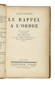 COCTEAU Jean, Dedica autografa su libro Le rappel a l'ordre. — Paris, Stock 1918-1926.