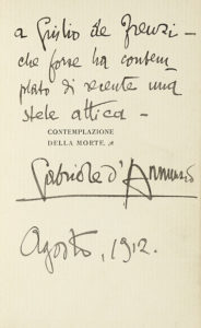 D'ANNUNZIO Gabriele, Dedica autografa su libro Contemplazione della morte. — (Milano, Treves 1912).