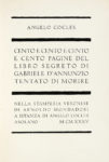 D'ANNUNZIO Gabriele, Dedica autografa su libro Angelo Cocles. — Cento e cento e cento e cento pagine del libro segreto di Gabriele D'ANNUNZIO tentato di morire. — Verona : Mondadori, 1935.