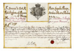 - 1 documento cartaceo in italiano, con litografia dello stemma del Granducato di Toscana e sigillo in ceralacca, contenente un conferimento di benservito ad un soldato a nome del granduca Pietro Leopoldo (1777)