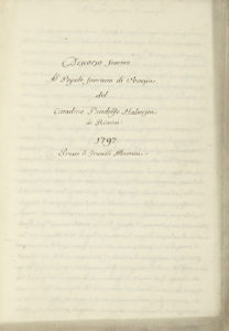 Si tratta della copia manoscritta del Discorso storico / al Popolo sovrano di Venezia / del / cittadino Pandolfo Malatesta / di Rimini / 1797 / Presso li Fratelli Albertini.