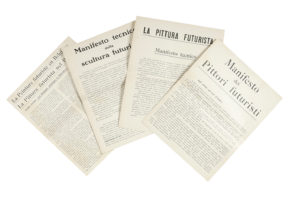 BOCCIONI Umberto, Manifesto dei Pittori futuristi. — Milano : Direzione del Movimento Futurista, 11 Febbraio 1910 [i.e. 1911 o 1912]. — In-4° (mm 290x230).