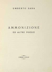 SABA Umberto, Ammonizione ed altre poesie. — Trieste : Tipografia Sociale, 1932. — In-8° (mm 202x155).