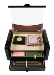 LE TRE DAME. — Modena : Il Bulino, s.d. — 1 scrigno in legno di ebano, conforme alla custodia originale, interamente rivestito in alcantara, con coperchio apribile in plexiglas e doppio cassetto con maniglie in pelle (mm 350x260x160) contenente :