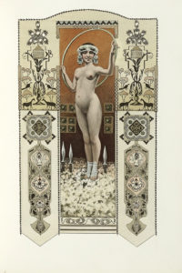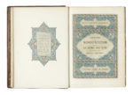 1) Firdousi Abou'L Kasim, Histoire de Minoutchehr selon le Livre des Rois, illustrée par Michel Simonidy. Paris : H. Piazza, 1919, con testo incorniciato e illustrazioni a colori, e in legatura in marocchino avana con decorazioni in oro al dorso, ai piatti e ai contropiatti, sguardie in seta con motivo floreale, conservate le brossure originali, custodia ;