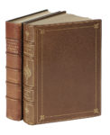 2) Diehl Charles, Theodora Imperatrice de Byzance [...] Illustrations de Manuel Orazi. Paris : Piazza, [1904], n. 280 di 300 copie, testo incorniciato e illustrazioni a colori, in marocchino giansenista verde scuro firmato Durvand-Pinard (dorso sbiadito), contropiatti riquadrati da filetti dorati, sguardie in seta moirée verde scuro, conservate le brossure originali. (2)