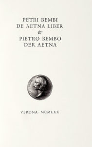 BEMBO Pietro, De Aetna Liber et Pietro Bembo Der Aetna. — Verona : Officina Bodoni, 1970. — In-8° (mm 235x155).