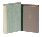SI AGGIUNGE : Sentenze di sette sapienti greci. Verona : Editiones Officinae Bodoni, 1976. In-8° (mm 248x160). Legatura editoriale in mezza pergamena, con piatti in carta decorata e titoli in oro al dorso ; entro astuccio originale in tela. (2)