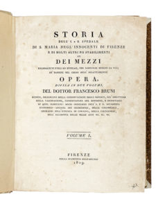 BRUNI Francesco, Storia dell'I. e R. Spedale di S. Maria degl'Innocenti di Firenze e di molti altri... — Firenze : Stamperia gran-ducale, 1819. — 2 parti in 1 volume in-4° (mm 245x185).