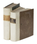 Legatura in mezza pergamena con piatti marmorizzati e titoli impressi in oro su tassello al dorso.