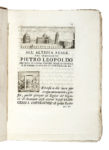 Pagine XXIV, 428 ; XIX, [1], 412 con, complessivamente, 1 antiporta allegorica, 1 ritratto di Francesco Granduca di Toscana incisi in rame su disegni di Gio. Battista Tempesti., 1 pianta di Pisa ed 1 albero genealogico ripiegati, anch'essi fuori testo.