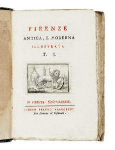 FOLLINI Vincenzo, Firenze antica, e moderna illustrata. T. I (VIII). — In Firenze : presso Pietro Allegrini ; presso Anton Giuseppe Pagani, e comp., 1789-1802. — 8 volumi in-8° (mm 175x125).