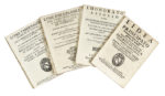 Pagine 20, [2]. [RILEGATO CON:] altre 36 placchette simili, tutte pubblicate a Lucca tra il 1643 e il 1698, per lo più dai Marescandoli e da Giacinto Paci, ma anche da altri. Marche tipografiche ai frontespizi.