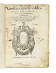 [SI AGGIUNGE :] (Guidiccioni Alessandro), Lucensis ecclesiae constitutiones synodales... Lucae : apud Vincentium Busdracum, 1571. In-4° con grande stemma vescovile al frontespizio, iniziali xilografiche, apparentemente completo ma non collazionato e con vari difetti (fascicoli pallidamente bruniti, lavoretti di tarlo in margine, ecc.), rilegato con frammento di pergamena manoscritta. (3)