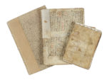 Carte : 100. Grande stemma vescovile al frontespizio, primo fascicolo quasi sciolto, pallidi aloni, in pergamena flessibile coeva (corta e un po' sciupata).
