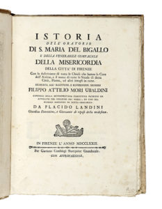 LANDINI Placido, Istoria dell'Oratorio di s. Maria del Bigallo e della venerabile Compagnia della Misericordia della citta di Firenze, con la descrizione di tutte le chiese che hanno la cura dell'anime, e il nome di tutte le strade di detta città......