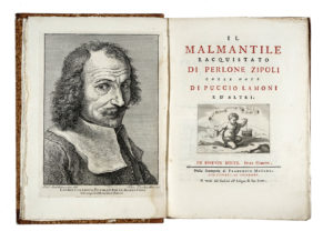 I OPERA : Edizione fiorentina del noto poema eroicomico in 12 canti del pittore e letterato Lorenzo Lippi (1606-1664), uscito postumo nel 1676, sotto lo pseudonimo di Perlone Zipoli. Melzi II, 329 ; Gamba 597 : «[...] molto più ornata, accresciuta e corretta delle antecedenti».