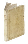 Legatura in piena pergamena, con cornice fitomorfa in oro ai piatti e titolo manoscritto (e parzialmente scolorito) al dorso.
