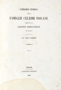 PASSERINI Luigi, Sommario storico delle famiglie celebri toscane... — Firenze : Alessandro, Ulisse Diligenti, 1862-64. — 3 volumi in-8° grande (mm 258x180).