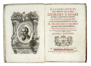 VASARI Giorgio, Ragionamenti, sopra le invenzioni da lui dipinte in Firenze nel Palazzo di Loro Altezze... — In Arezzo : Per Michele Bellotti, 1762. — In-4° (mm 265x190).