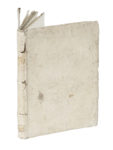 Galleria di tarlo al margine interno e inferiore dei fascicoli E-M (tocca il testo in alcuni punti), qualche macchietta, per il resto buona copia in barbe e cartonato d'attesa (sciupato). (1)