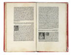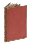 Carte [34]. Piccola vignetta xilografica al frontespizio e alle carte c7r e e2r, iniziali in legno nel testo, marca di Pacini all'ultima carta. Pallido alone al margine inferiore (più forte in un paio di punti), qualche macchietta, ultime due carte con piccoli restauri (minima perdita di testo), ma nel complesso copia buona in mezzo vitellino con piatti in carta rossa decorati con cornici impresse in oro, dorso liscio con titoli e decorazioni in oro, sguardie marmorizzate. (1)