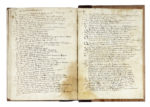 Assenti a1, u1 e u8 (bianca), forellini al margine inferiore delle prime carte, alone scuro al margine interno inferiore nel fascicolo d e poi, più grande, nel fascicolo u, e altre trascurabili tracce del tempo.