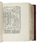 – Seconda parte : 10 grandi xilografie (una ripetuta due volte, e 4 riprese dalla prima parte) e 4 vignette (alcune ripetute). Terza parte : 9 grandi xilografie (5 ripetute dalle parti precedenti) e 5 vignette (alcune ripetute). Totale : 28 grandi xilografie (17 incisioni uniche, le altre ripetute) e 16 vignette nel testo (molte ripetute). Conservazione : prima parte : piccola galleria di tarlo al margine interno del fascicolo e ; restauro con integrazione al margine delle carte s4 e x8 ; strappetto restaurato al margine di x7 e di D3v.