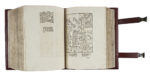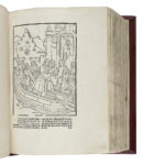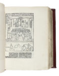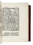 frontespizio con grande iniziale xilografica animata e con grande titolo in gotico ; testo in gotico su due colonne con capilettera xilografici.