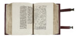 Legatura : moderna in stile in pieno marocchino marrone su assicelle con lati smussati, decorazioni a secco, fermagli in pelle e ottone. Il testo si apre e si chiude con due fogli pergamenacei da antico antifonario miniato. (1)