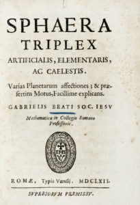 BEATI Gabriele, Sphaera triplex artificialis, elementaris, ac caelestis. — Romae : Typis Varesijs, 1662. — In-8° (mm 158x110).
