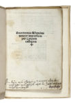 Ciò che tuttavia rende la presente copia assolutamente unica sono le fitte postille e correzioni autografe dello stesso Berengario, che così scrive accanto alla marca tipografica in fine : "Nos et nostrum spiritum absentitum atque hoc ignorandum fuit impressum. Et ideo post dictis nugis nostris consentio. Ego Carp.s [Carpanensis] propria manu scripsi".