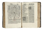 Carte : CCLXXXVIII, [27, assente R6 bianca]. Frontespizio entro cornice floreale xilografica e con marca tipografica, grandi iniziali xilografiche su fondo criblé, bella illustrazione con l'Arbor Consanguinitas impresso in rosso e nero alla carta t3v, altro diagramma in rosso e nero a t8r.