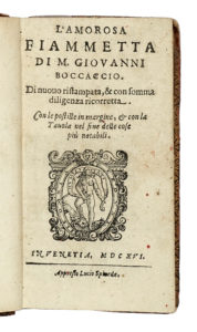 BOCCACCIO Giovanni, L'amorosa Fiammetta... — In Venetia : appresso Lucio Spineda, 1616. — In-12° (mm 130x70).