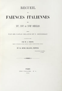 DELANGE Carle, Recueil de faïences italiennes des XVe, XVIe et XVIIe siècles... — Paris : Henri Delange, 1869. — In-folio (mm 505x360).