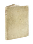Mancanza all'angolo superiore esterno dell'antiporta, macchiata, alcune macchie e fioriture alle tavole e un lavoro interno alle carte. Legatura coeva in piena pergamena rigida con titolo manoscritto al dorso.