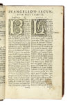 Bella edizione del Nuova Testamento curata da Erasmo da Rotterdam e stampata da Charlotte Guillard (nata nel 1480 circa - morta nel 1557), tipografa francese della prima metà del XVI secolo. Nel 1502 sposò lo stampatore Berthold Rembolt, socio di Ulrich Gering, che creò la prima tipografia in Francia. Alla morte del marito nel 1519, Charlotte si occupò da sola dell'attività di stampa per quasi quarant'anni. Si risposò nel 1520 con Claude Chevallon, un libraio aperto agli umanisti i cui gusti influenzarono le scelte editoriali della moglie. Il suo catalogo comprende infatti opere di Erasmo, Pacian di Barcellona, ​​Ilario di Poitiers e conta ad oggi quasi 190 edizioni pubblicate con il suo marchio : "apud Carolam Guillard, sub Sole aureo", tra cui il Lexicon Graecolatinum di Jacques Toussain, 1552, di cui ha firmato la prefazione.