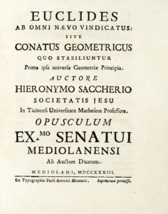 EUCLIDES, Euclides ab omni naevo vindicatus : sive Conatus geometricus quo stabiliuntur prima ipsa universae geometriae principia... — Mediolani : ex typographia Pauli Antonii Montani, 1733. — In-4° (mm 237x184).