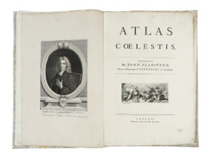 Seconda edizione "del più importante atlante celeste del XVII secolo" (Honeyman), stampato per la prima volta nel 1729, dieci anni dopo la morte di Flamsteed. L'Atlas Coelestis è stato il primo atlante stellare basato su osservazioni telescopiche ; contiene mappe delle principali costellazioni visibili da Greenwich, con disegni di James Thornhill.