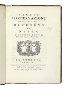 FORTIS Alberto, Saggio d'osservazioni sopra l'isola di Cherso ed Osero... — In Venezia : Presso Gaspare Storti, 1771. — In-4° (mm 240x175).