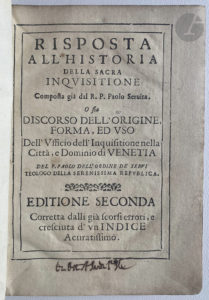 [ALBIZZI (Francesco)]. — Risposta all'historia della inquisitione Composta già dal R. P. Paolo Servita. O sia Discorse dell'origine, forma, ed uso Dell' Ufficio dell' Inquisitione nella Città, e Dominio di Venetia. — [Rome : Tipografia della...