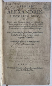 Nouvelle édition rare de la première traduction française des « Guerres des Romains » d'Appien, établie par Claude de Seyssel à partir d'une translation latine faite par son collaborateur Jean Lascaris.