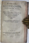 APPIEN. — Des Guerres des Romains, livres xj… Plus, y sont adioustez deux livres, nouvellement traduicts de Grecs en Françoys, par le Seigneur d'Avenelles. — Paris : Benoist Prevost, 1560. — 2 parties en un volume in-8, basane marbrée, dos...