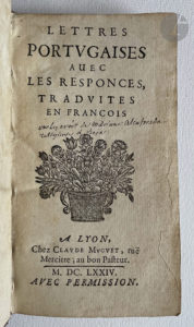 [GUILLERAGUES (Gabriel de)]. — Lettres portugaises avec les responces traduites en francois. — Lyon : Claude Muguet, 1674. — In-12, veau brun, dos à nerfs orné, tranches mouchetées (reliure de l'époque).